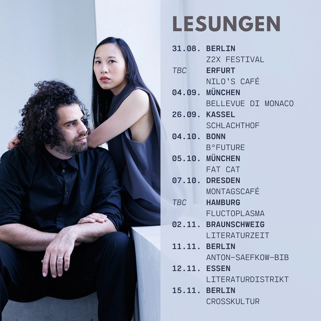 Die Lebenswege des Schriftstellers Ahmad Katlesh und der Journalistin Vanessa Vu sind durchtränkt, aber nicht bestimmt von Kriegen, Flucht und Migration. Doch was bedeuten diese Erfahrungen für ihre Gegenwart? Katlesh floh aus Syrien und lebte mehrere Jahre in Jordanien, bevor er 2016 nach Deutschland kam. Vu ist in Deutschland geboren und lebte die ersten Jahre in einem Asylbewerberheim in Niederbayern, ihre Eltern kamen aus Vietnam. Im Tanz lernten beide sich kennen, in den darauffolgenden E-Mails näherten sie sich einander an.